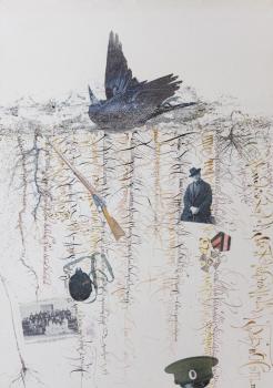 бумага, масло, акварель, чернила, плёнка, 84.5×54.5, 2024