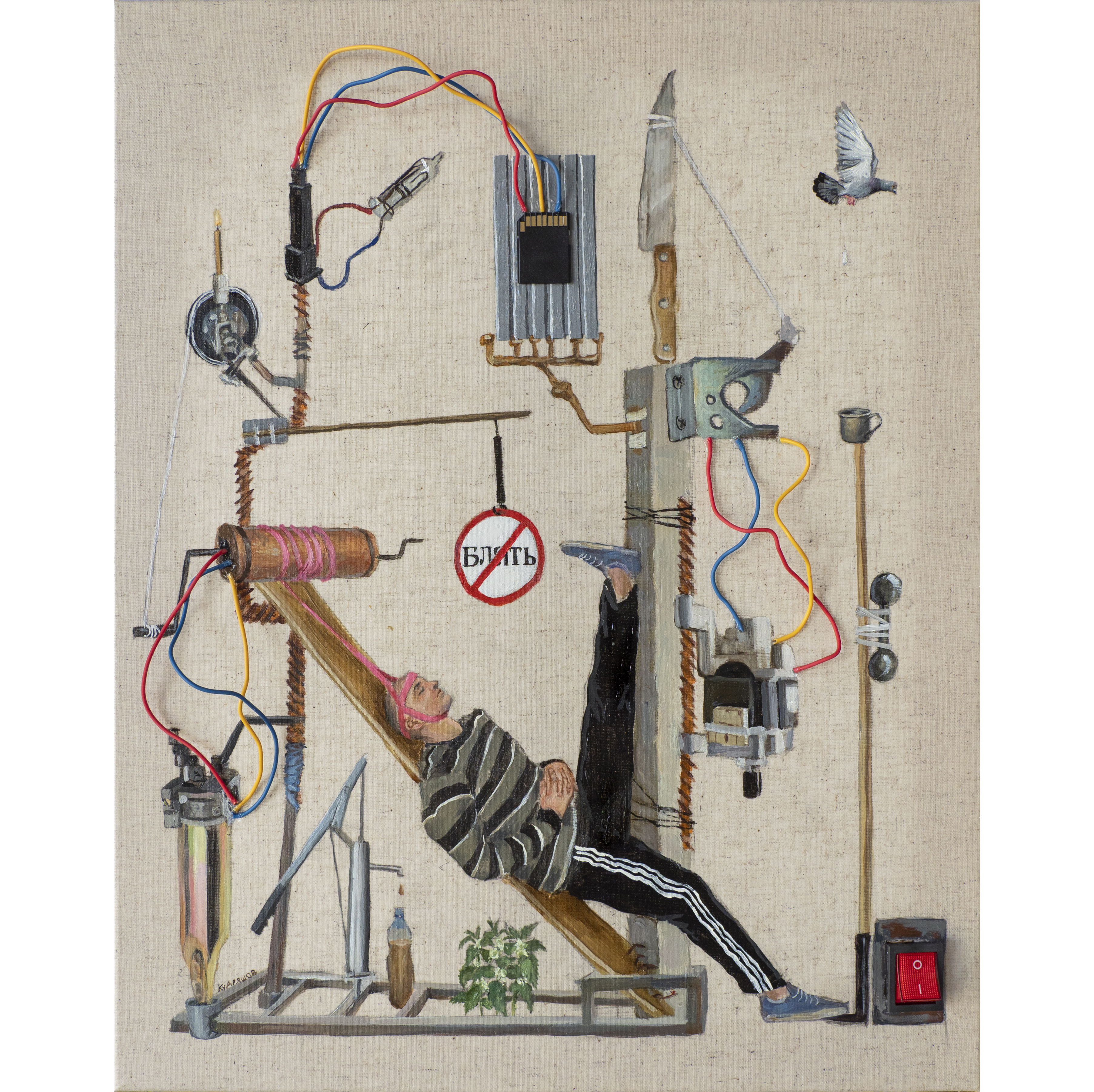 холст, акрил, масло, выключатель, карта памяти, провода, 40х50