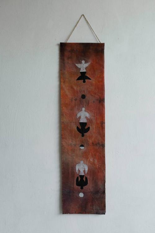 дерево, хб, ткань, акрил, воск , 26х132, 2024