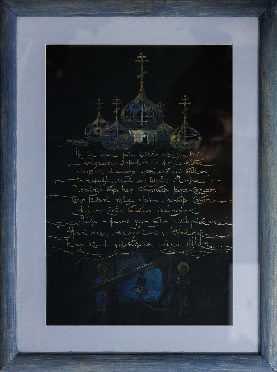 бумага, акрил, гуашь, чернила, каллиграфия древнерусским уставом, скорописью и вязью, 300х100, 2022