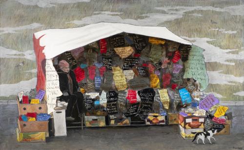 холст, акрил, масло, двойной скотч, конфеты, 50х70, 2023